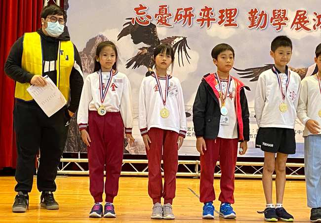 (甲組)中年級冠軍:金華國小 忻莉奇6段(主將)  曾暐晴3段(二將)