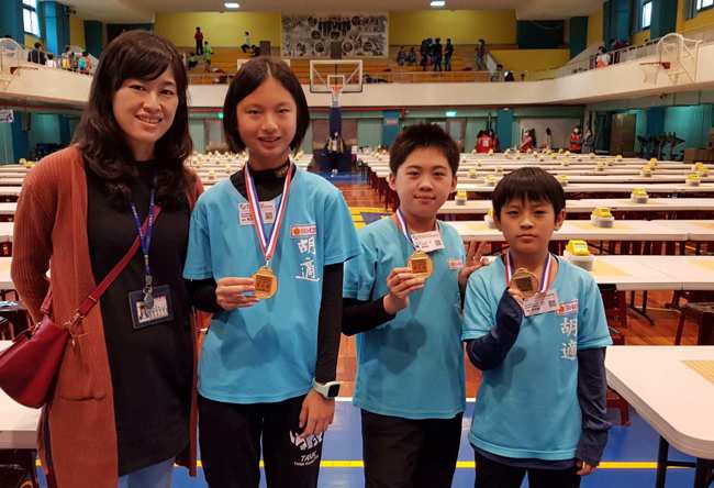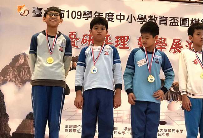 三位中華棋院學員:(乙組)高年級亞軍:胡適國小 葉芷暄6段(,女,主將) 謝淙崴5段(二將)洪立典4段(三將)