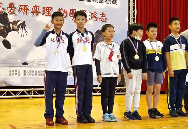 (甲組)高年級第7名:敦化國小胡睿宸6段(主將)  王彥程5段(二將)左三。