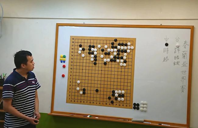 7/31早上,林書陽九段老師在段位班課,則熱騰騰地解析了許皓鋐與中國時越九段的這盤棋。因為善於屠對手龍,時越九段有個「場均一條龍」的雅號。