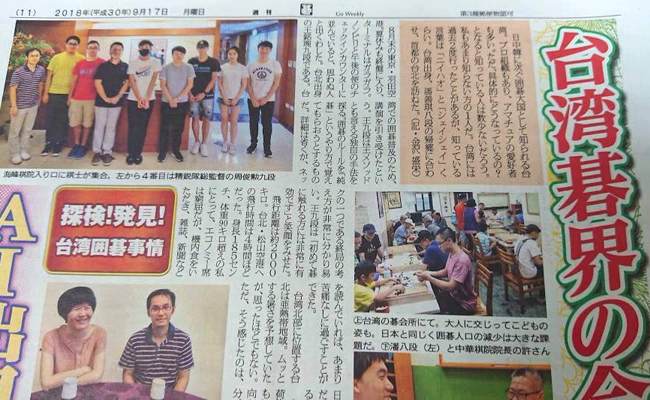在日本發行廣泛、深具影響力、傳播圍棋新聞資訊的專業週刊──碁週刊,在最新一期裡,報導台灣圍棋動態!