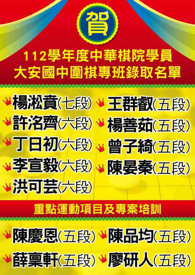 2023年大安國中圍棋專班放榜 中華棋院學員9人上榜