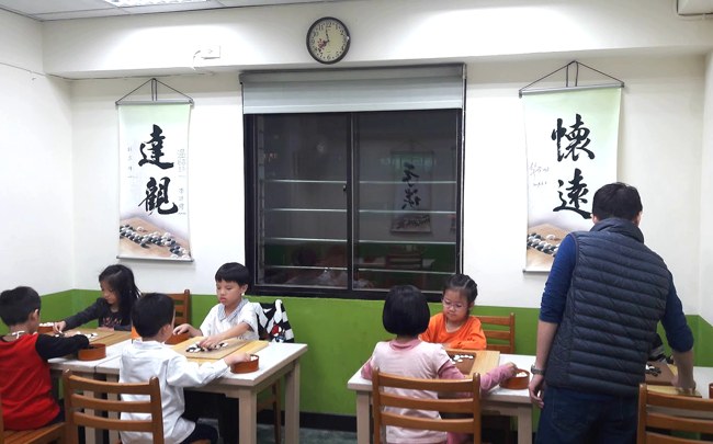 課堂上,老師輪流對不同的學生下指導棋。