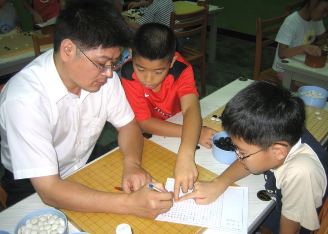 林宏陽老師教導學員記譜,並在課堂上為他們覆盤。